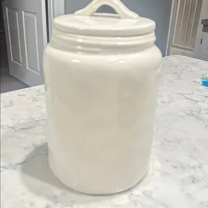 Elegant Rae Dunn canister. Ideal for kitchen storage. Great condition with minor scuff marks on bottom.