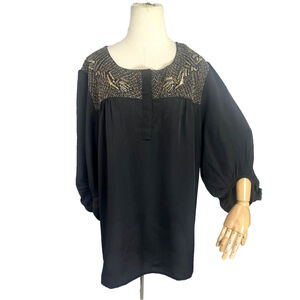 Avenue Black Beaded Balloon Sleeves Top Tunic Plus Size 26 28 New
