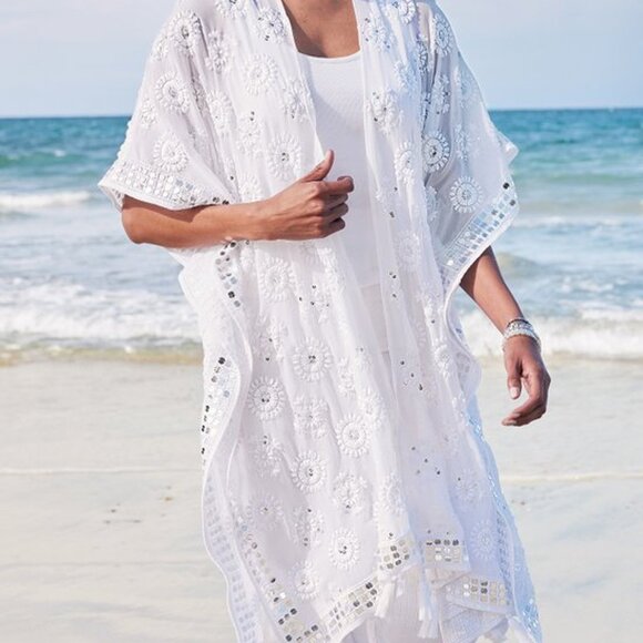Soft Surroundings Athena Embroidered Sequin Tassel Kimono Topper