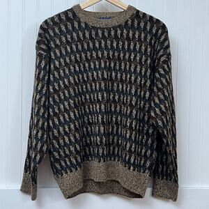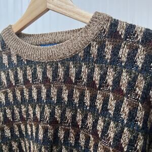 Vintage 90s Cosby Style Sweater Textured Knit Abstract Pattern Pullover Men's S