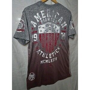 American Fighter Buckle T-Shirt All Over Print, Sz Large, Gray/Maroon