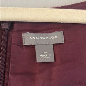 This stunning Ann Taylor dress features a rich burgundy hue, perfect for a cocktail night out. Its sleeveless design and scoop neckline complement the sheath silhouette, offering a chic and sophisticated look. The midi length adds a touch of elegance, making it a versatile addition to your wardrobe.