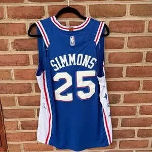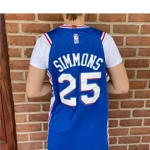 Red white and blue Philadelphia 76ers NBA Jersey. Ben Simmons. Nike