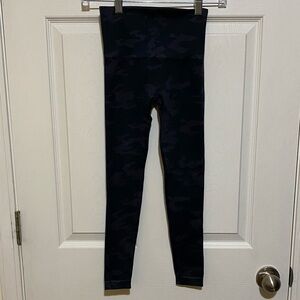 Look sleek and strong in these Spanx camo print leggings! Size XS. Designed with sculpting support and a flattering high-rise waistband, these leggings offer both performance and style. Perfect for workouts, errands, or athleisure outfits.