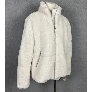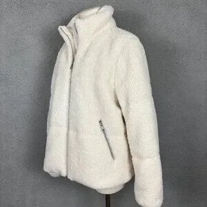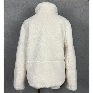 Levis Women's Stand Collar Sherpa Puffer Jacket Zip Up Pockets XL Cream NWT's.