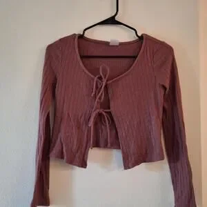 No Boundaries Women's Long Sleeve Ribbed Tie Front Top