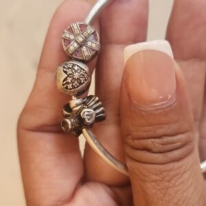 PANDORA 9.25 Silver stamped VINTAGE 7.25" Bangle Charm Bracelet 3 charms
