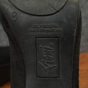 Fioni Peep Toe Pumps Women’s 8 Black Suede Stiletto heel. Elegant bow-accent heels for work, parties, or dress occasions.