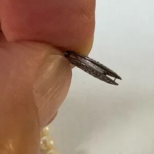 Classic vintage pearl necklace with a secure sterling clasp. Perfect for any occasion.