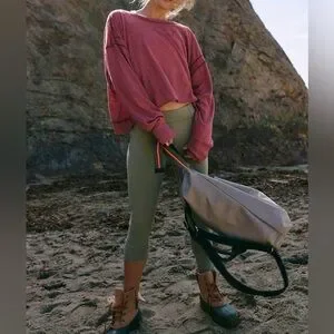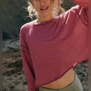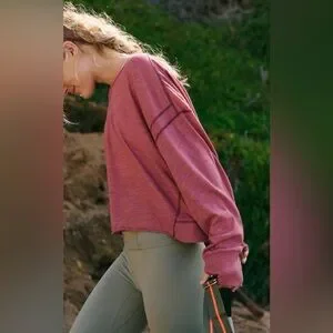 NWT Free People FP Movement My Time Layer - clove dark red mauve pink - large