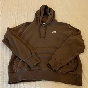 Stylish Nike hoodie in rich chocolate brown. Features iconic logo on chest.