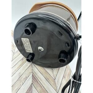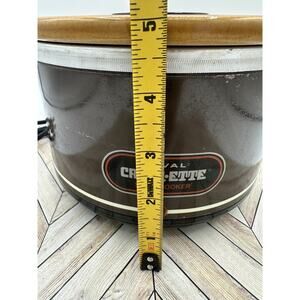 The stoneware pot is often brown, and the exterior casing may have a faux wood grain finish.