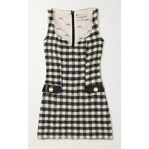 Rowen Rose Houndstooth Tweed Faux Leather Trimmed Checked Mini Dress in Black