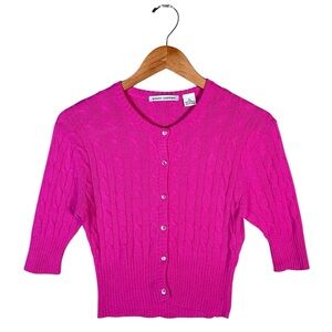 EUC women’s size L AUTUMN CASHMERE Cashmere Cropped Cable Knit 3/4 Sleeve Cardigan