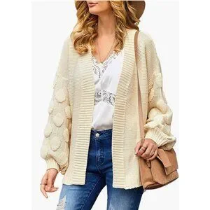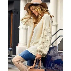 Prepare to turn heads with this eye-catching cardigan sweater! Featuring an ultra cozy cable knit and pom pom pointelle details over chunky batwing sleeves. Open front construction and lightweight, relaxed style. Casual v-neckline and long sleeves with ribbed hems. Oversized, slouchy fit. Get ready for endless compliments with this stunning cable knit sweater! ❤️