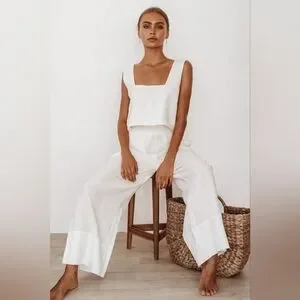 This elegant white set offers a chic and sophisticated look. Perfect for any occasion, it combines style and comfort effortlessly.