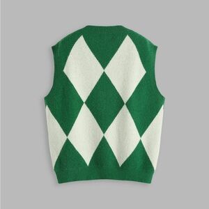 NWT CIDER "Magician" Co-ord Knit Vest and Shorts Green/White Argyle Size S