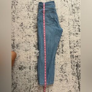 Lighter wash with holes/distressing at the knees. Size 29.