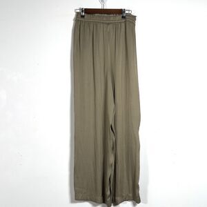 House of Harlow 1960 Womens Satin Wide Leg Hi-Waist Pants Olive Sz M Pull-On