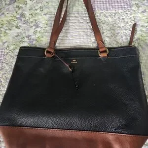 Fossil Black and Brown Leather Tote Bag