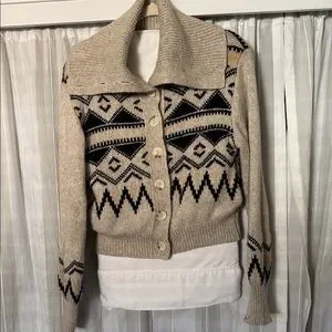 Who What Wear Fair Isle Cardigan Sweater Women’s Small Cream Geometric Knit