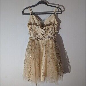 GLS Collective Elizabeth K Champagne Gold 3D Floral Butterfly Dress Size Medium