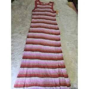 C & C California Neapolitan Crocheted Striped Pastel lined beach cover dress