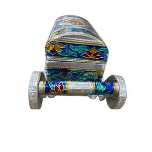 Vintage Indian Handcrafted Silver foil carriage trinket jewelry box SKU 9145