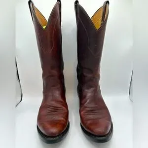 Vintage Men’s Panhandle Slim Brown Leather Cowboy Western Rancher Pull On Boots
