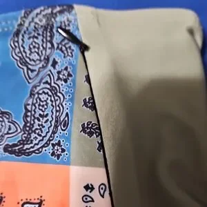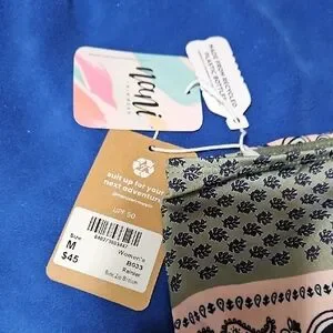 Embrace summer with the vibrant Patchwork Bikini Bottom by Nani. Featuring a unique multicolor design with shades of green, orange, and blue, this bikini bottom is perfect for making a statement at the beach. Has a UPF rating of 50 for sun protection. Zipper on side opens into a small pocket perfect for ID or key.