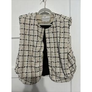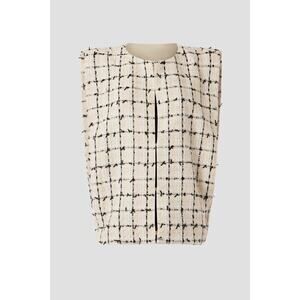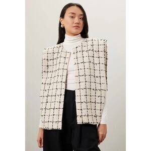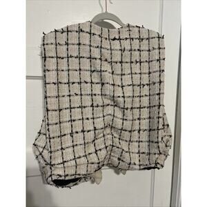 Off-white plaid tweed (95% Polyester 5% Wool). Lining (95% Polyester 5% Spandex). Vest. Sleeveless. Crewneck. Pull on. 22" from shoulder to hemline. Imported. Please review photos closely so you’re aware of the condition.