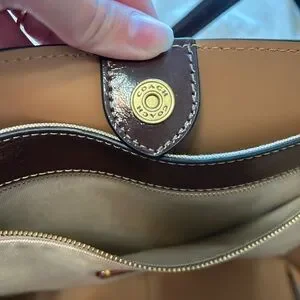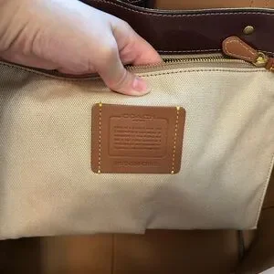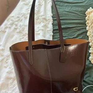 Sophisticated burgundy coach leather bag. Features sturdy handles and sleek design. Ideal for daily use. Barley used !