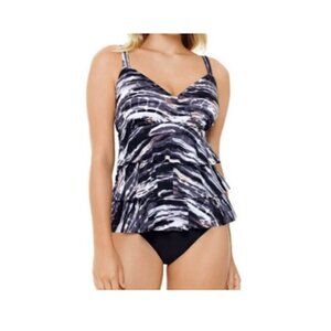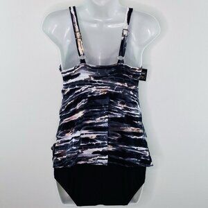 Swim Solutions $109 Coastal Plates Triple Tier One Piece Swimsuit Size 10