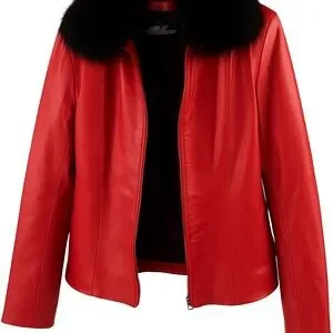 Vintage Red Leather Fur Collar Jacket 70s Mod Glam Rock Style | Real Fur Trim M
