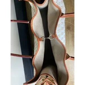 Dooney & Bourke Letter Logo Monogram Tote Bag Leather Canvas Beige