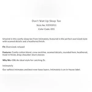 NWT Free People Intimately S Don’t Wait Up Sleep Tee in Gray Lilac Combo New $60