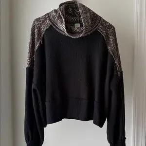 Stay cozy and stylish with this elegant black and brown sweater. Perfect for any occasion.