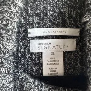 Nordstrom Signature Funnel Neck Cashmere Tunic Sweater Grey Black size XL