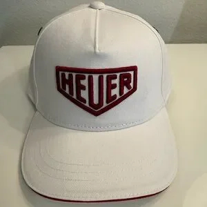 Super RARE “HEUR” TAG HEUER logo hat with raised red logo against crisp white adjustable hat. New with hanging tag