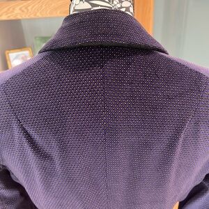 Sleek gorgeous purple with tiny yellow dots, soft velvet fabric. Made in Portugal. Comfortable blend. Perfect condition.
