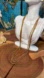 Gold, three strand, necklace with ornate, gold flower, clip on earrings.