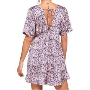 Lulus Express Yourself Blush Pink Floral Print Satin Babydoll Dress Size Large L