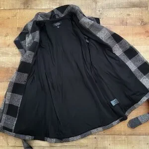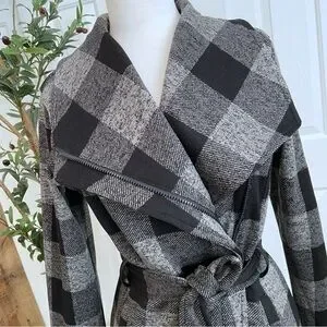 Plaid, fall, winter, gray, black, classic, wrap style, zippered, pockets