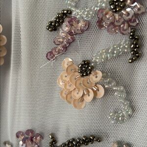 Worn to two spring and summer weddings and got lots of compliments! PLEASE NOTE: threading of the beaded flowers is visible up close through the mesh by design, but is not visible from far away. Additionally, it does sport a few loose threads. See pics for details. Happy to provide additional pics upon request.