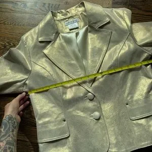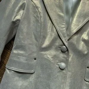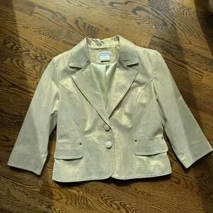 Newport News Leather Genuine Leather Vintage Gold Shimmer Jacket Size 14