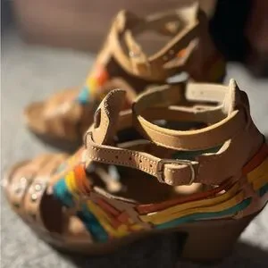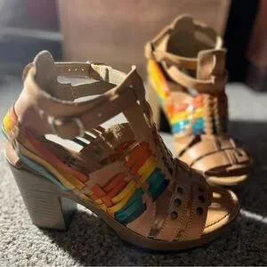 Mexican Huarache Colorful Leather Strappy Heels Sandals Women’s 9 Mexico 26