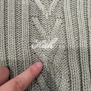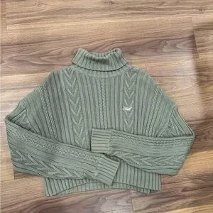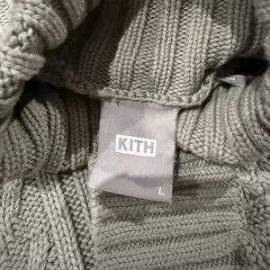 Elegant sage green turtleneck with intricate cable knit design. Heavy weight, great quality. Ideal for a chic, cozy look. See pictures for imperfections - small pull below kith logo