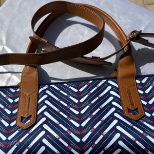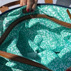 Stella & Dot Teal and Brown Tote NWOT. Very large. Bag extends