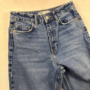 Timeless and versatile, these Zara high-rise straight leg jeans feature a flattering waistline and a classic vintage-inspired wash. Cut in sturdy cotton denim with traditional 5-pocket styling and button closure, they’re perfect for everyday wear and easy to dress up or down.