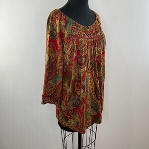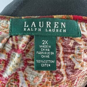 Lauren Ralph Lauren Multicolor Paisley Round Neck 3/4 Sleeve Peasant Top Plus 2X